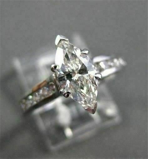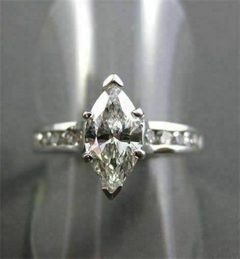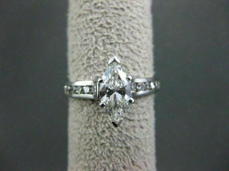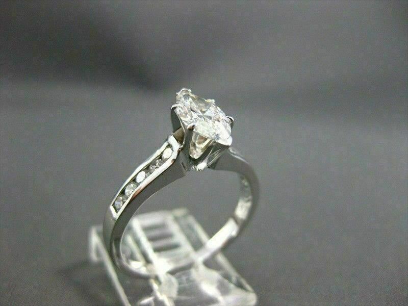 ESTATE WIDE 1.12CT DIAMOND MARQUISE & ROUND 14K WHITE GOLD ENGAGEMENT RING 22138