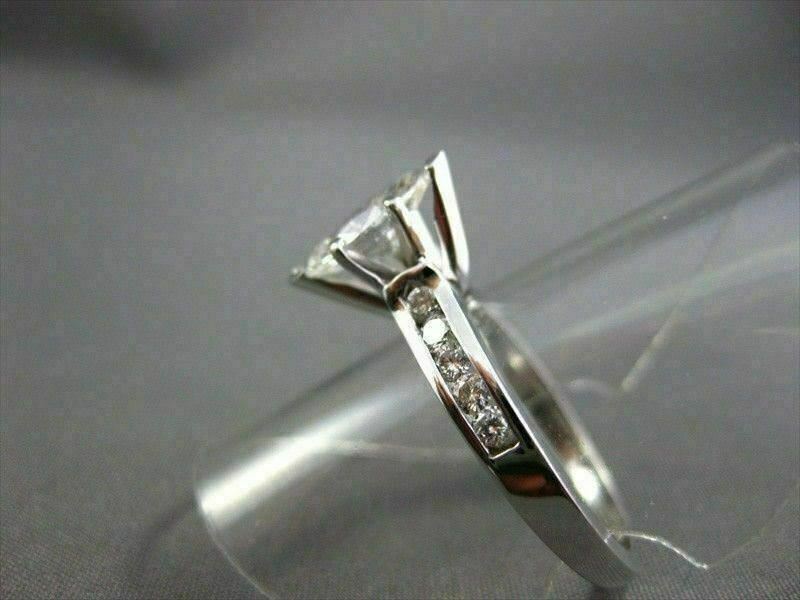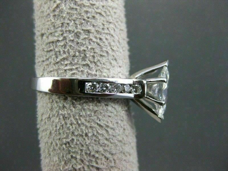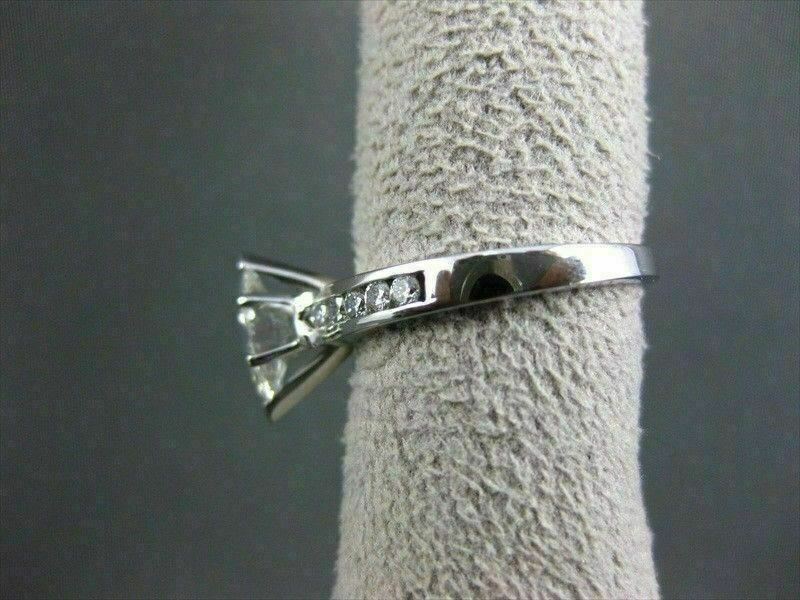 ESTATE 14KT WHITE GOLD ENGAGEMENT RING. CLASSIC CHANEL DESIGN. DIAMONDS ARE F/G COLOR, VS CLARITY. CENTER DIAMOND IS .82 CARATS. SIDE DIAMONDS ARE .30 CARATS. MEASURES 11MM WIDE. RING SIZE 7.50. SIZING CAN BE PROVIDED BY OUR MASTER JEWELER. WRITTEN APPRAISAL AVAILABLE. COMES IN A PRESENTABLE GIFT BOX