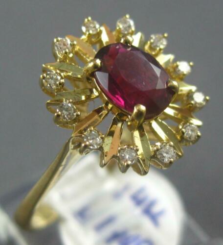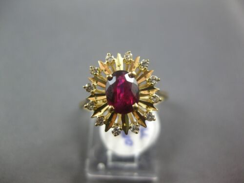 ESTATE WIDE 1.25CT DIAMOND & AAA RUBY 14KT YELLOW GOLD OVAL & ROUND FLOWER RING