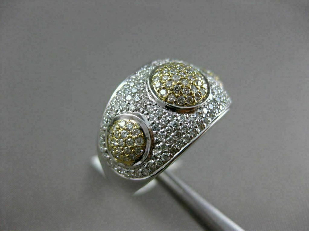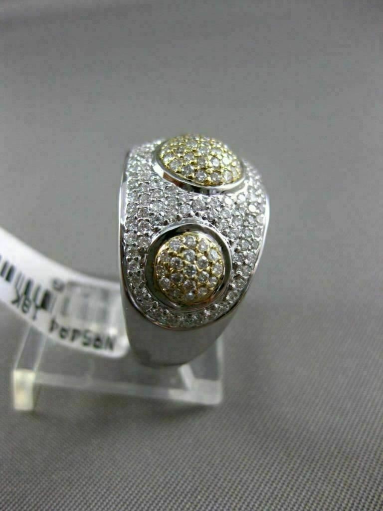 ESTATE WIDE 14KT WHITE & YELLOW GOLD FUN RING. 3D PAVE ETOILE DESIGN. DIAMONDS ARE F/G COLOR, VSSI CLARITY 1.28 CARATS. MEASURES 13mm WIDE. RING IS SIZE 7.25. CAN BE SIZED BY OUR MASTER JEWELER UPON REQUEST. WRITTEN APPRAISAL AVAILABLE. COMES IN A PRESENTABLE GIFT BOX.