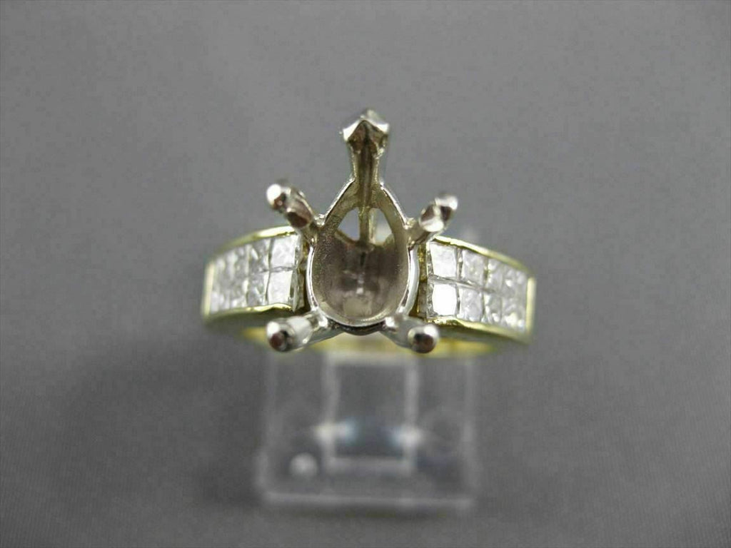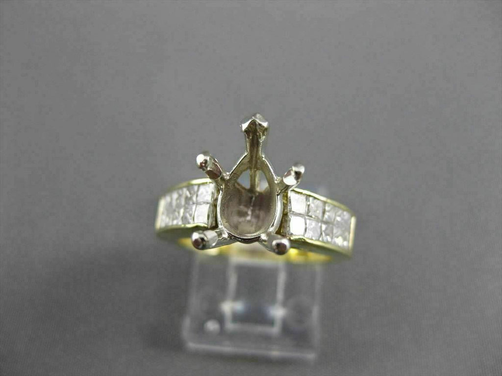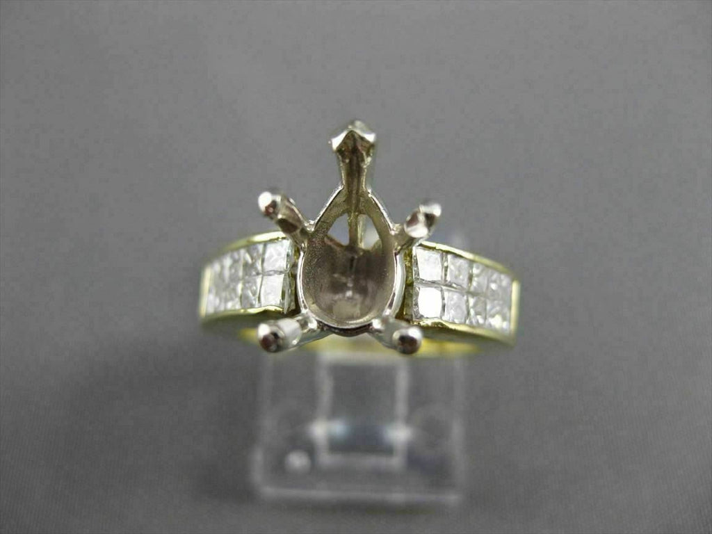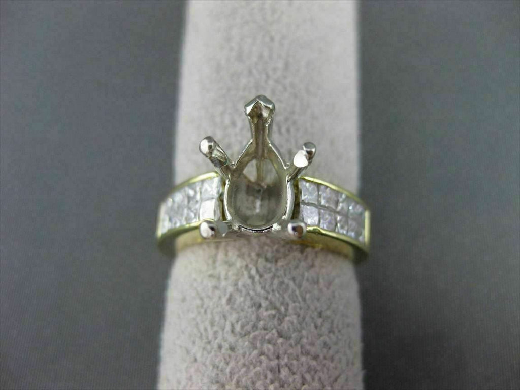 ESTATE WIDE 18KT WHITE & YELLOW GOLD SEMI MOUNT ENGAGEMENT RING. DIAMONDS ARE F/G COLOR, VS CLARITY 1.60 CARATS. CENTER BASKET FITS PEAR SHAPED STONE UP TO 10MM. 6.5MM WIDE. RING IS SIZE 6. CAN BE SIZED BY OUR MASTER JEWELER. WRITTEN APPRAISAL AVAILABLE. COMES IN A PRESENTABLE GIFT BOX