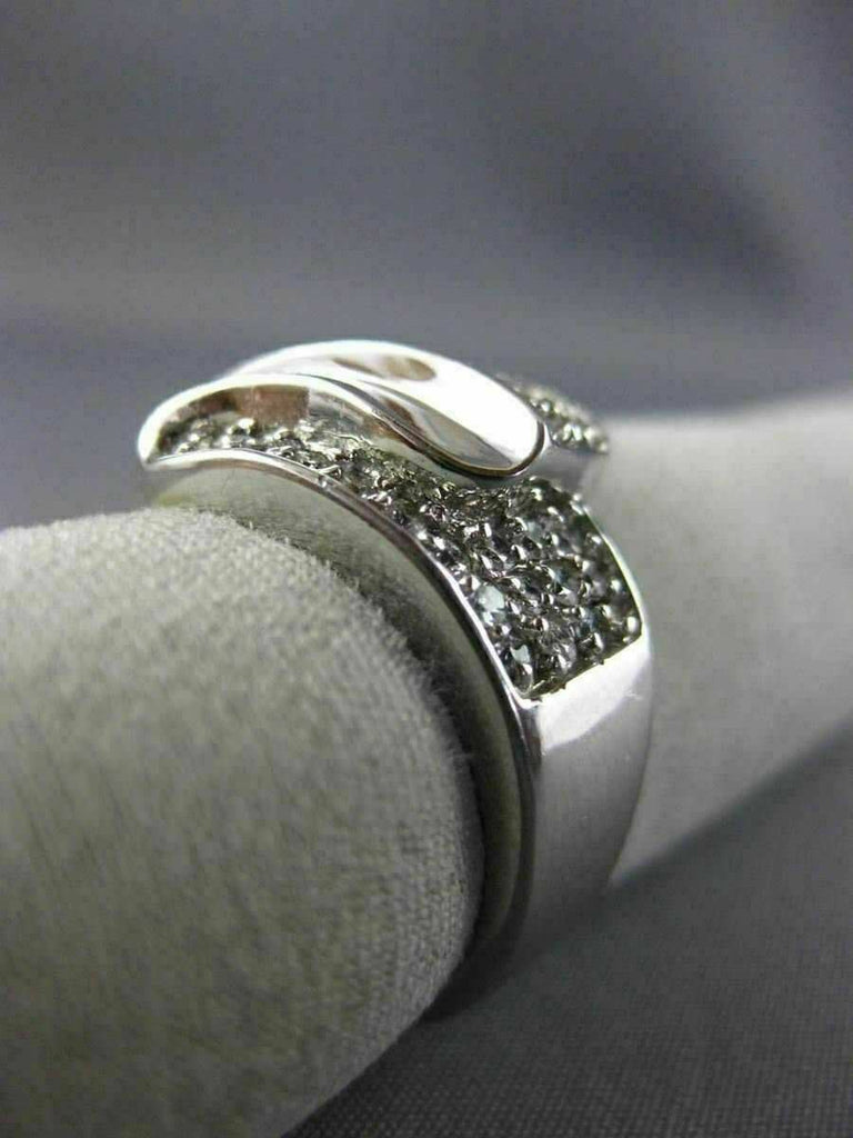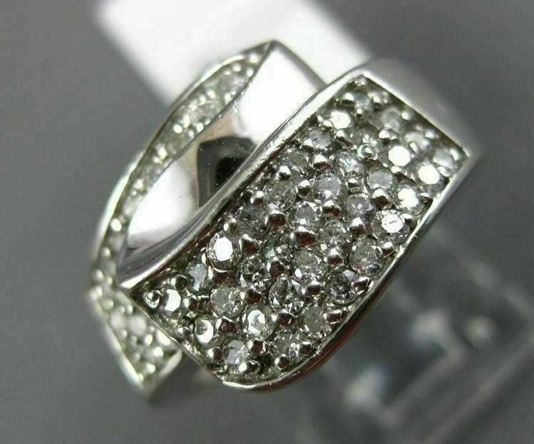 ESTATE WIDE .75CT DIAMOND 14KT WHITE GOLD 3D CLASSIC MULTI ROW ZIGZAG FUN RING