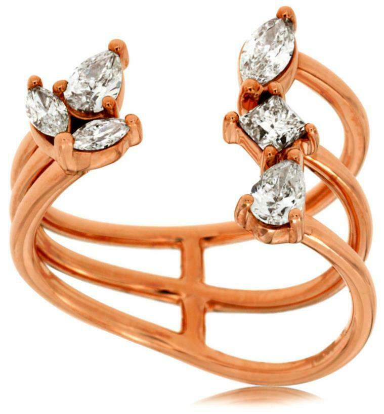 ESTATE WIDE .77CT DIAMOND 14KT ROSE GOLD 3D MULTI SHAPE TENSION FUN RING