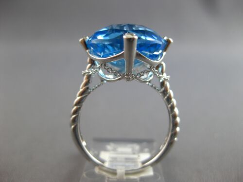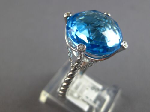 EXTRA LARGE 14KT WHITE GOLD FUN RING. 3D ETOILE DESIGN. DIAMONDS ARE F/G COLOR, VSSI CLARITY .05 CARATS. AAA EXTRA FACETED ROUND BLUE TOPAZ IS 13.27 CARATS. MEASURES 14mm WIDE. RING SIZE 7. CAN BE SIZED BY OUR MASTER JEWELER UPON REQUEST. WRITTEN APPRAISAL AVAILABLE. COMES IN A PRESENTABLE GIFT BOX.