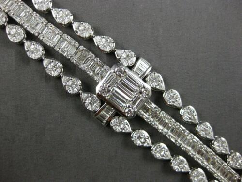 EXTRA LARGE 18KT WHITE GOLD TENNIS BRACELET. 3D MULTI ROW ROYAL COCKTAIL DESIGN. DIAMONDS ARE F/G COLOR, VVS-VS CLARITY. ROUND DIAMONDS ARE 3.76 CARATS. BAGUETTE DIAMONDS ARE 7.27 CARATS. MARQUISE AND PEAR SHAPE DIAMONDS ARE 5.4 CARATS. MEASURES 27mm WIDE. 7.5" INCHES LONG. WRITTEN APPRAISAL AVAILABLE. COMES IN A PRESENTABLE GIFT BOX.