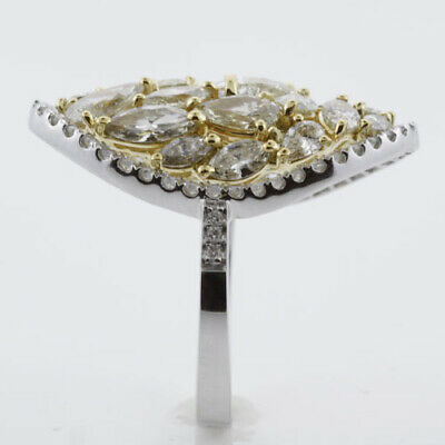 EXTRA LARGE 2.40CT WHITE & FANCY YELLOW DIAMOND 18K 2 TONE GOLD CLUSTER FUN RING