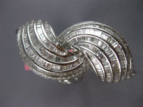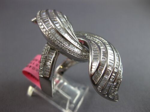 EXTRA LARGE 18KT WHITE GOLD COCKTAIL RING. 3D CRISS CROSS INFINITY DOUBLE LEAF DESIGN. ROUND AND BAGUETTE DIAMONDS ARE F/G COLOR, VSSI CLARITY 3.60 CARATS. MEASURES 45mm WIDE. RING SIZE 7. CAN BE SIZED BY OUR MASTER JEWELER UPON REQUEST. WRITTEN APPRAISAL AVAILABLE. COMES IN A PRESENTABLE GIFT BOX.