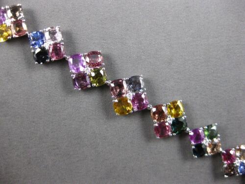 EXTRA LARGE 18KT WHITE GOLD TENNIS BRACELET. 3D MULTI FLOWER GEOMETRICAL DESIGN. DIAMONDS ARE F/G COLOR, VVS-VS CLARITY .24 CARATS. AAA MULTI COLOR SAPPHIRES ARE 35.15 CARATS. MEASURES 15mm WIDE. 7" INCHES LONG. WRITTEN APPRAISAL AVAILABLE. COMES IN A PRESENTABLE GIFT BOX.