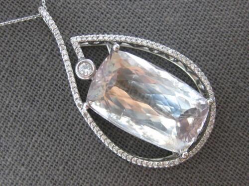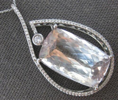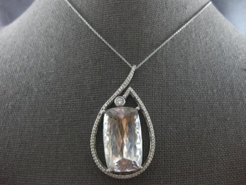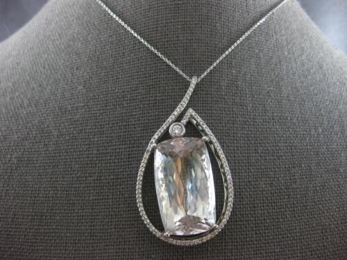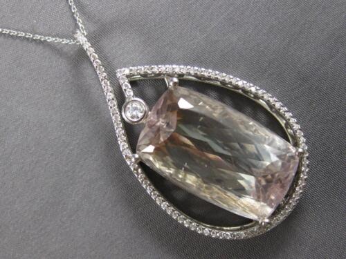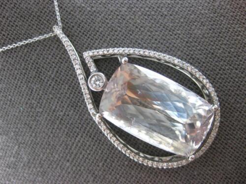 EXTRA LARGE 14KT WHITE GOLD SLIDER PENDANT. 3D TEAR DROP FILIGREE DESIGN. ROUND DIAMONDS ARE F/G COLOR, VSSI CLARITY 1.33 CARATS. AAA EXTRA FACETED CUSHION CUT LIGHT GREEN AMETHYST IS 37.0 CARATS. MEASURES 45.5mm X 25mm. COMES ON A 14KT GOLD DIAMOND CUT 16" INCH CHAIN. WRITTEN APPRAISAL AVAILABLE. COMES IN A PRESENTABLE GIFT BOX.