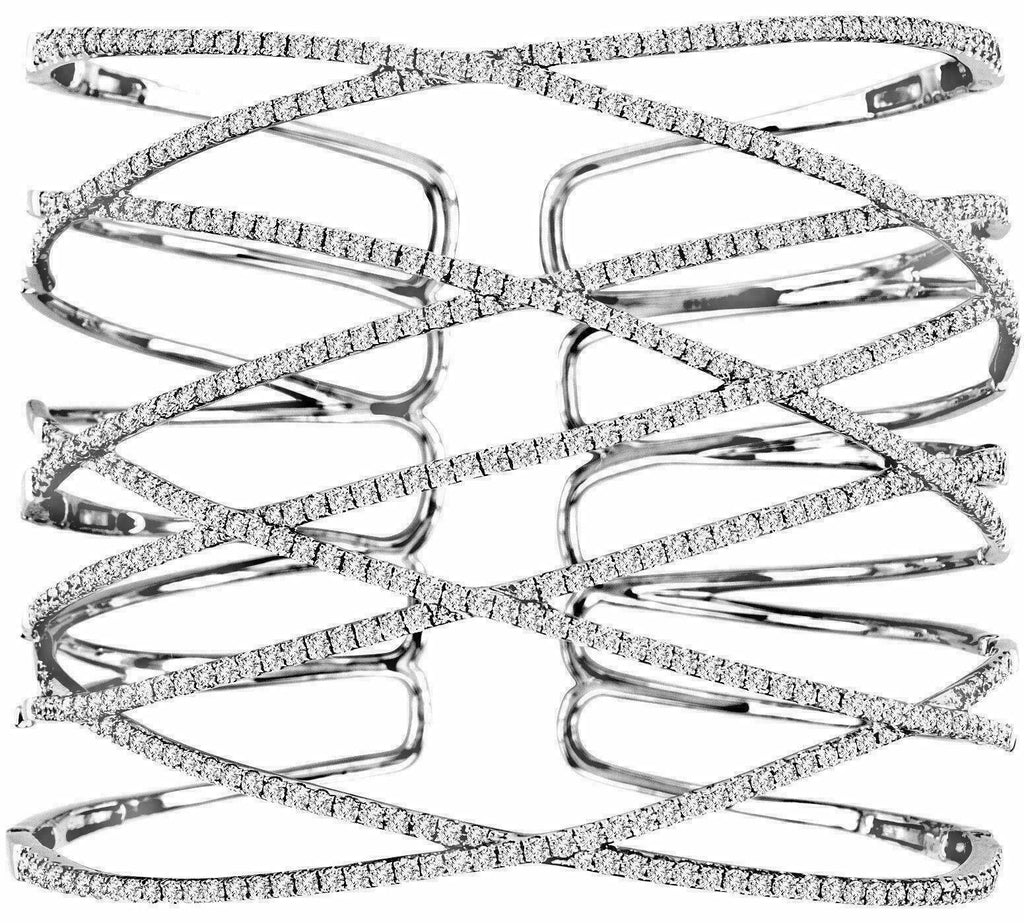 EXTRA LARGE 6.90CT DIAMOND 18KT WHITE GOLD MULTI ROW CRISS CROSS BANGLE BRACELET