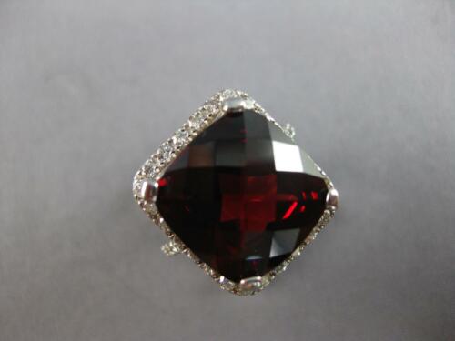 EXTRA LARGE 9.80CT DIAMOND & AAA RHODOLITE 14KT WHITE GOLD CUSHION & ROUND RING