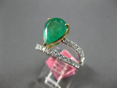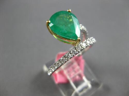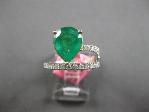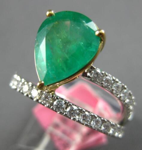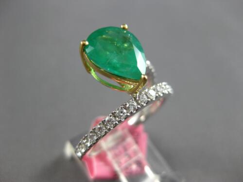 GIA CERTIFIED LARGE 18KT WHITE AND YELLOW GOLD ENGAGEMENT RING. 3D CRISS CROSS DESIGN. ROUND DIAMONDS ARE F/G COLOR, VVS-VS CLARITY .46 CARATS. AAA PEAR SHAPE EMERALD IS 2.49 CARATS. MEASURES 12.5mm WIDE. RING SIZE 6.5. CAN BE SIZED BY OUR MASTER JEWELER UPON REQUEST. WRITTEN APPRAISAL AVAILABLE. COMES IN A PRESENTABLE GIFT BOX.