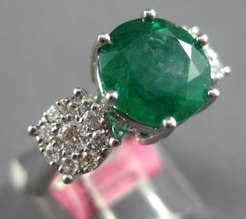 GIA LARGE 3.30CT DIAMOND & AAA EMERALD 18K WHITE GOLD 3D 3 STONE ENGAGEMENT RING