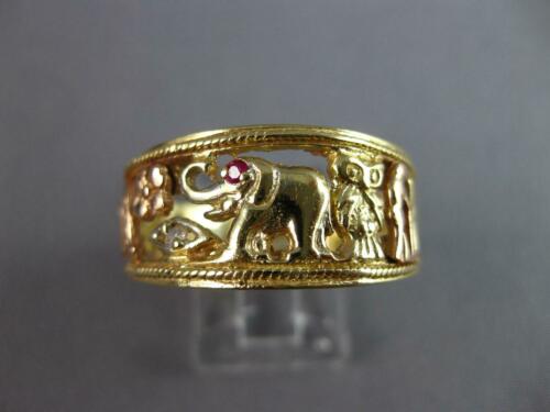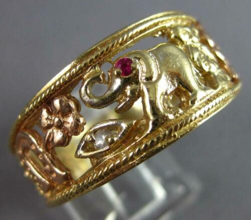 LARGE .02CT AAA RUBY 14K TRI COLOR GOLD FLORAL ELEPHANT OWL HORSESHOE RING 27488