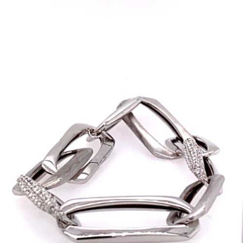 LARGE 1.33CT DIAMOND 18KT WHITE GOLD 3D MATTE & SHINY SQUARE LINK FUN BRACELET