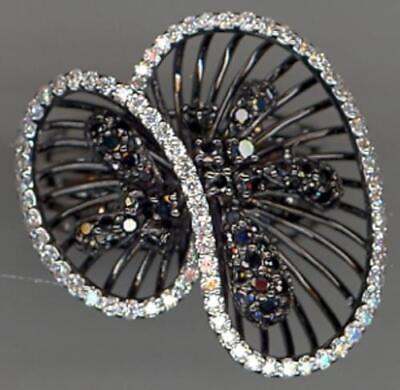 LARGE 18KT WHITE AND BLACK GOLD LOVE RING. 3D FLOWER INFINITY DESIGN. WHITE DIAMONDS ARE F/G COLOR, VSSI CLARITY .60 CARATS. BLACK DIAMONDS ARE .75 CARATS. RING SIZE 7. CAN BE SIZED BY OUR MASTER JEWELER UPON REQUEST. WRITTEN APPRAISAL AVAILABLE. COMES IN A PRESENTABLE GIFT BOX.