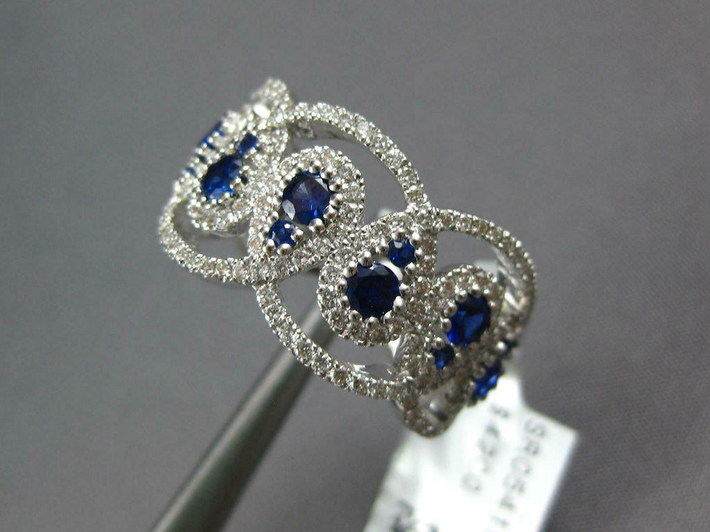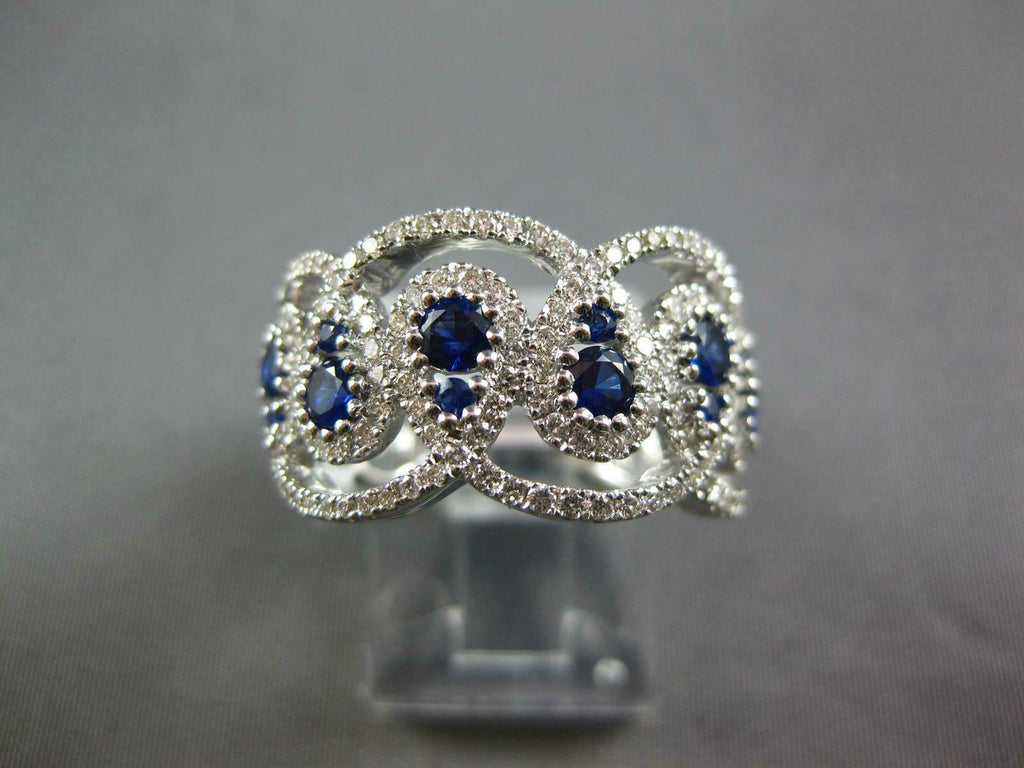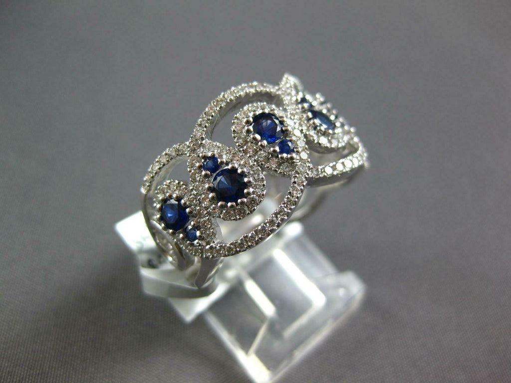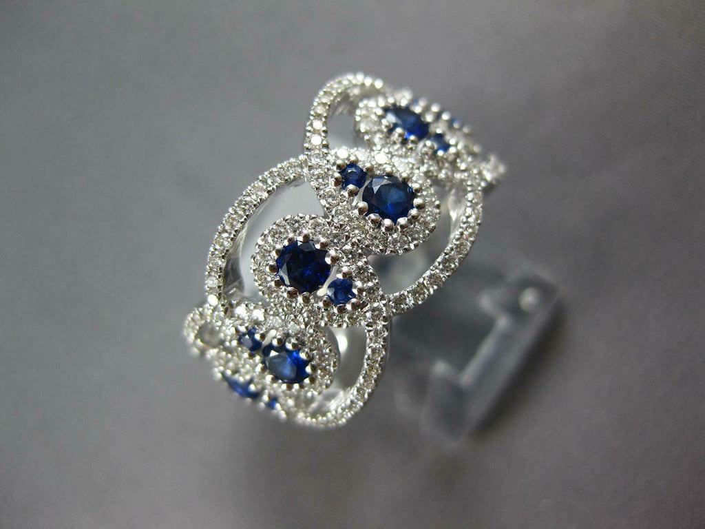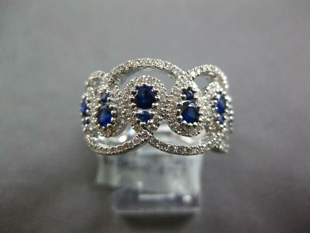 LARGE 18KT WHITE GOLD ANNIVERSARY RING. 3D LOVE KNOT TEAR DROP DESIGN. DIAMONDS ARE F/G COLOR, VSSI CLARITY .67 CARATS. AAA SAPPHIRES ARE .79 CARATS. MEASURES 10.8MM WIDE. RING SIZE 6.5. CAN BE SIZED BY OUR MASTER JEWELER UPON REQUEST. WRITTEN APPRAISAL AVAILABLE. COMES IN A PRESENTABLE GIFT BOX.