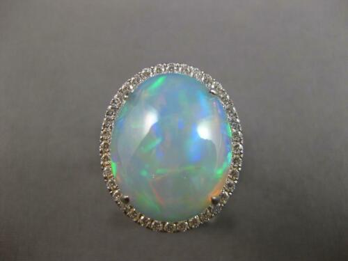 LARGE 13.81CT DIAMOND & AAA AUSTRALIAN OPAL 14K WHITE GOLD OVAL & ROUND FUN RING