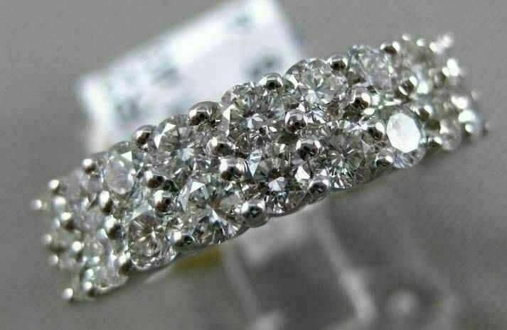 WIDE 1.40CT DIAMOND 18KT WHITE GOLD 3D DOUBLE ROW SEMI ETERNITY ANNIVERSARY RING